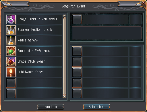 Für 20 Kuchenstücke kann man sich Buffs kaufen (1h Gruppenbuffs, diese lohnen sich jedoch nicht wirklich)